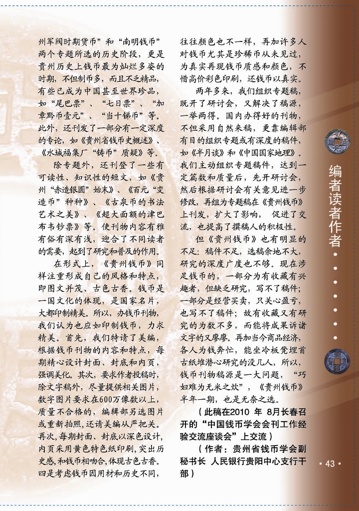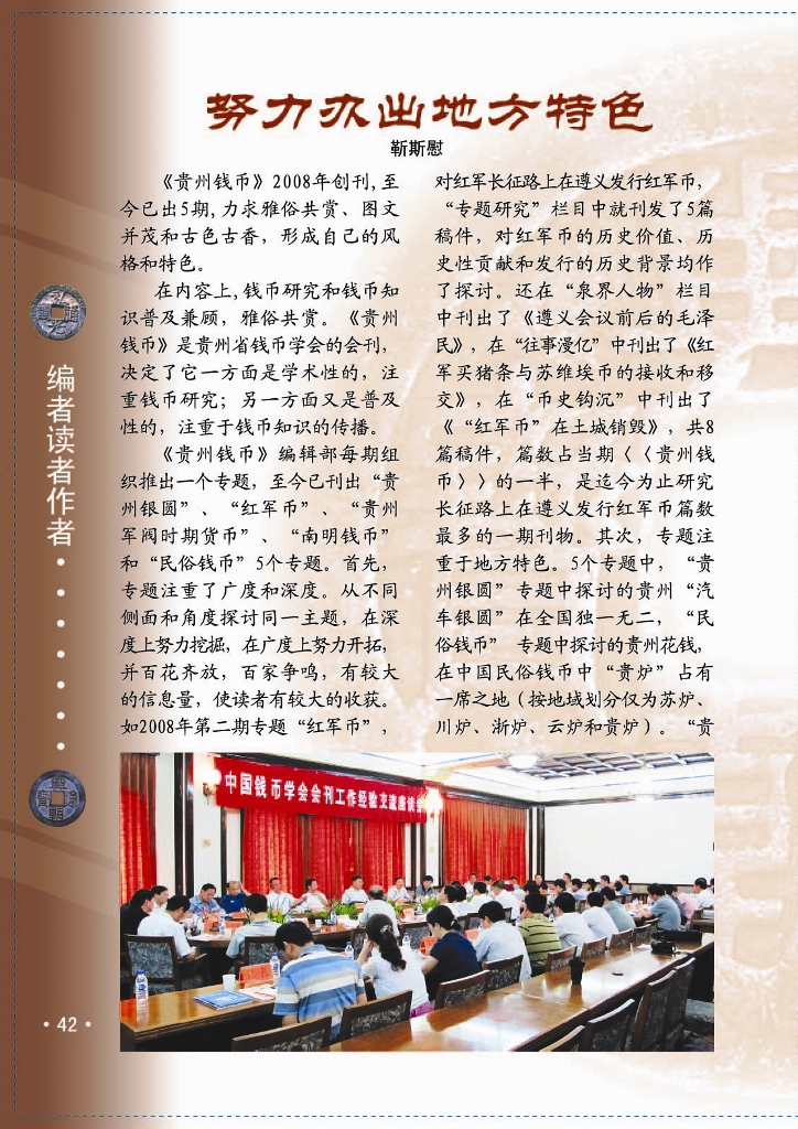 努力办出地方特色——2010年中国钱币学会会刊工作经验交流材料